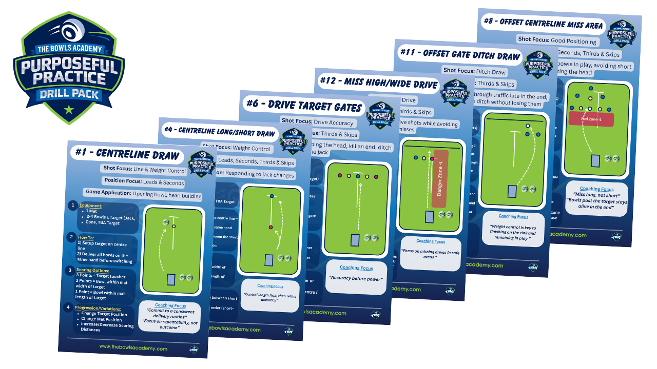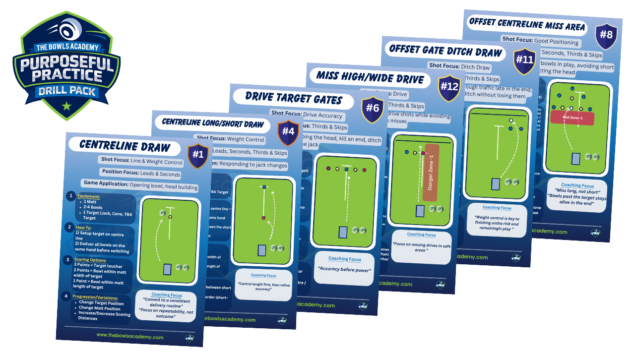 Turn your practice sessions into purposeful training with this pack of 12 structured lawn bowls drills designed to improve the key areas of your game.